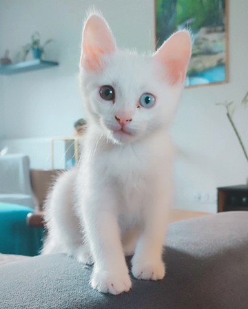 Aion et Alama sont deux frère et soeur aux yeux bleus et au magnifique pelage blanc, âgés de 2 mois 1/2. Nés dans un jardin à Villenave d’Ornon, d’une chatte errante (maintenant stérilisée).