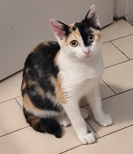 Anya est une chatonne tricolore âgée d’environ 5 mois, née dans un jardin à Carignan, d’une chatte sauvage (maintenant stérilisée). Fratrie: Automne (adopté) – Auréo (bientôt à l’adoption).