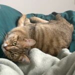 Elle n’est pas encore à l’aise lorsqu’on la porte ou qu’on l’attrape et aura besoin qu’on respecte ses limites et son rythme. Lorsqu’elle est trop stimulée, il peut lui arriver de donner quelques coups de patte avant de s’éclipser.