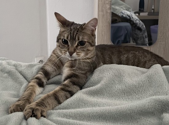 Ada est une jeune chatte tigrée d’environ 10 mois. Issue d’un groupe d’une trentaine de chats stérilisés par l’association, elle a été recueillie en famille d’accueil alors qu’elle avait environ 3 mois.