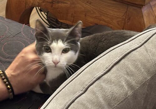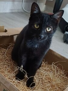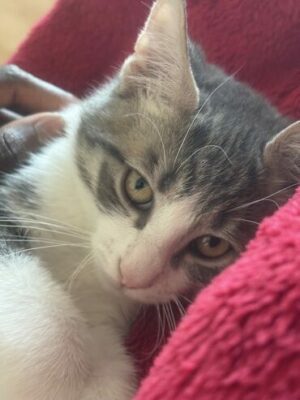 Aiko est un chaton un peu timide au début mais très joueur et plein d’énergie ! Il adore aussi les moments plus calmes, avec câlins et ronrons. En accueil avec sa soeur Athena, ils s’entendent bien mais ont l’air préférer passer du temps avec leur famille d’accueil qu’entre eux, donc ils peuvent être adoptés séparément.