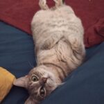 C’est une minette très attachante, mais qui a besoin qu’on soit patient avec elle et qu’on respecte ses limites (ne pas s’approcher trop vite, savoir quand la laisser tranquille…) pour continuer à évoluer.