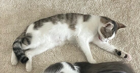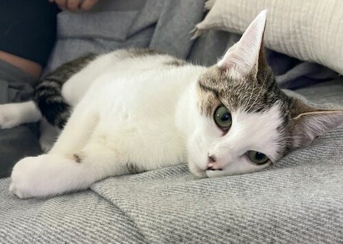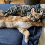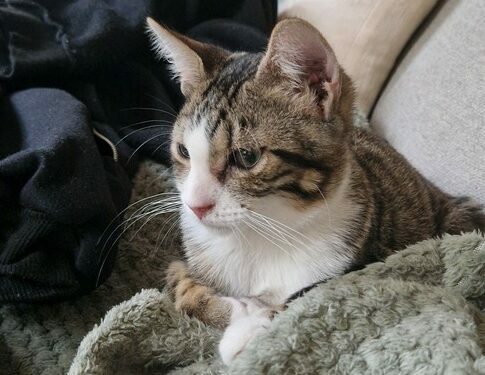 Il se laisse également porter et manipuler sans protester (ne mord pas et ne griffe pas). Il aime dormir seul ou avec Arty ou bien parfois contre nous (mais pas sur nous). Lui aussi est très gourmand de pâtée et accourt quand on l’appelle pour manger.