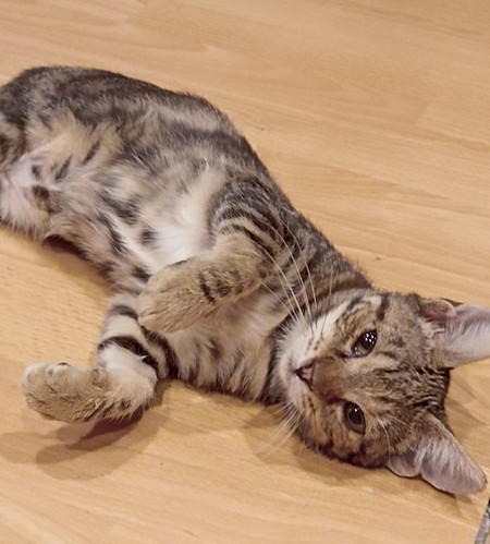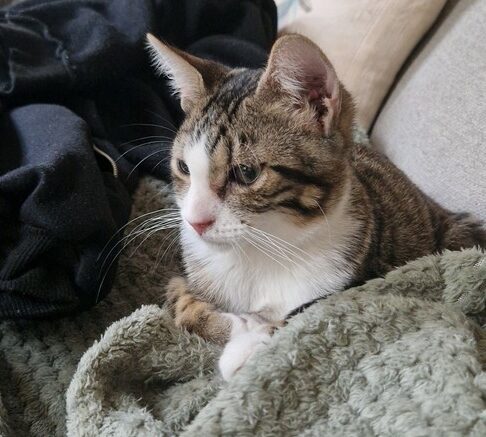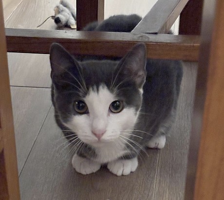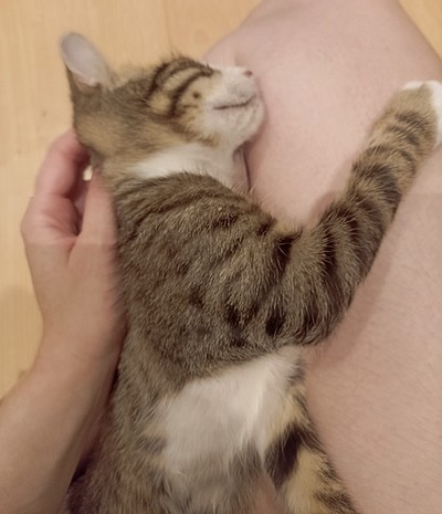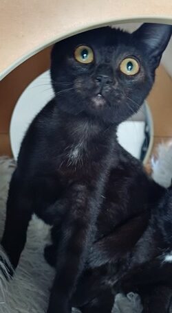 Aiko est un chaton un peu timide au début mais très joueur et plein d’énergie ! Il adore aussi les moments plus calmes, avec câlins et ronrons. En accueil avec sa soeur Athena, ils s’entendent bien mais ont l’air préférer passer du temps avec leur famille d’accueil qu’entre eux, donc ils peuvent être adoptés séparément.