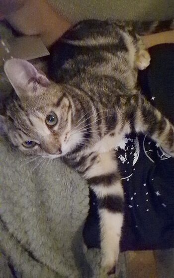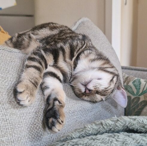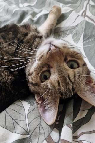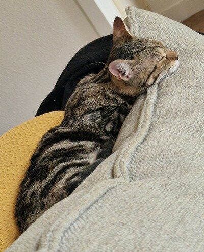 Athena est une machine à ronrons mais très joueuse et pleine d’énergie ! C’est vraiment une boule d’énergie mais on peut facilement avoir un moment plus câlin avec elle, elle ronronne dès qu’on s’approche.
