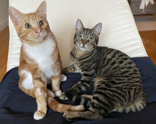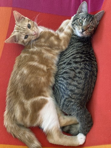 Arty et Archibald sont frères, ne se sont jamais quittés et sont fusionnels. Ils s’appellent quand ils ne sont pas dans la même pièce et semblent se rassurer l’un l’autre. Ils partagent tout : jeux, siestes, repas, moments de calme comme d’agitation. Ils ont besoin l’un de l’autre pour se sentir bien, et leur équilibre repose en grande partie sur cette relation. C’est aussi pour cela que nous souhaitons les faire adopter ensemble.