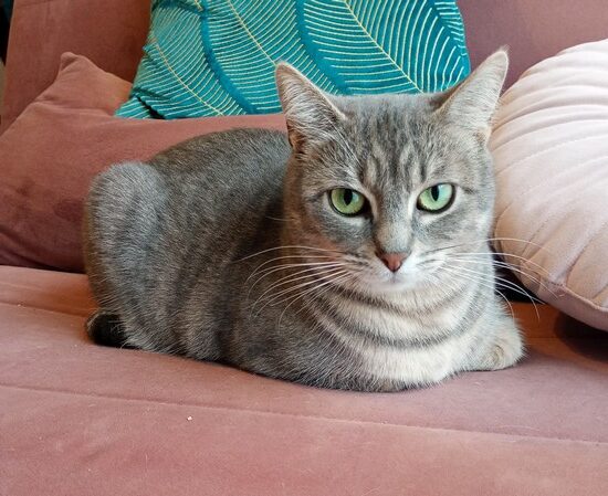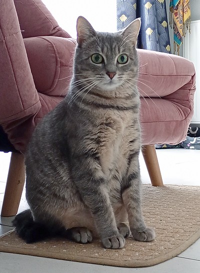 Patty est une petite femelle tigrée grise d’environ 2 ans, un peu timide, qui aura sans doute besoin d’un peu de temps pour s’habituer à sa nouvelle famille.
