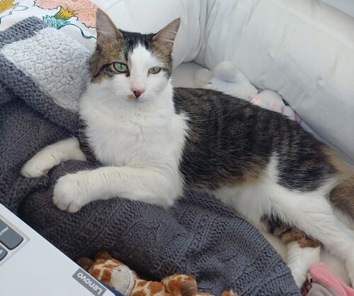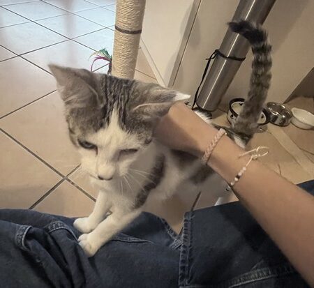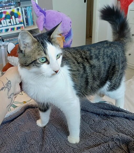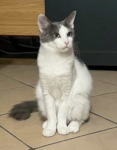 Loki est un jeune chat d’un an et demi, tigré et blanc. Adopté chaton, il est revenu au sein de l’association depuis peu.