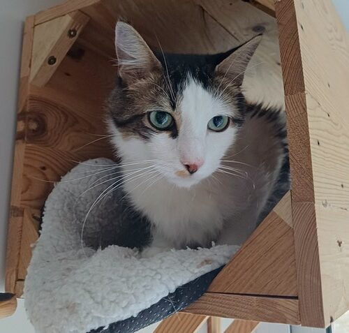 Abby: Très timide au départ, elle adore jouer et les câlins. Elle a seulement besoin de confiance avec la personne. Elle reste encore un peu timide et se cache au moindre bruit mais dès qu’elle arrivera se faire câliner, elle ronronnera en un rien de temps. Un jardin est préférable car elle adore courir partout. Enfant ok si assez grand, calme et respectueux. Entente autre chat ok si le chat est habitué aux congénères.