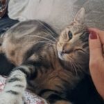 Il a parfois peur de moi ou du bruit et là il va détaler rapidement mais en général il est calme et pour le jeu il joue gentiment mais si je lui donne ma main il peut la mordiller et il sort un peu les griffes pour s’y accrocher. Il aime bien mordiller mes pieds aussi quand ils sont visibles dans mon lit et que je les agite 😅