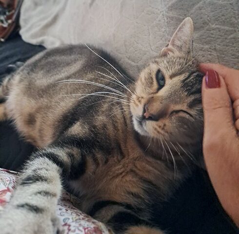 C’est simple : on a rarement vu une chatte aussi calme, câline, et tendre. Elle adore les caresses, les moments de tranquillité, et elle vous rendra tout l’amour qu’on lui donne, en mille fois plus doux. Elle aime suivre ses humains partout, elle aura besoin d’adoptants assez présents, prêts à lui accorder de l’attention et des câlins